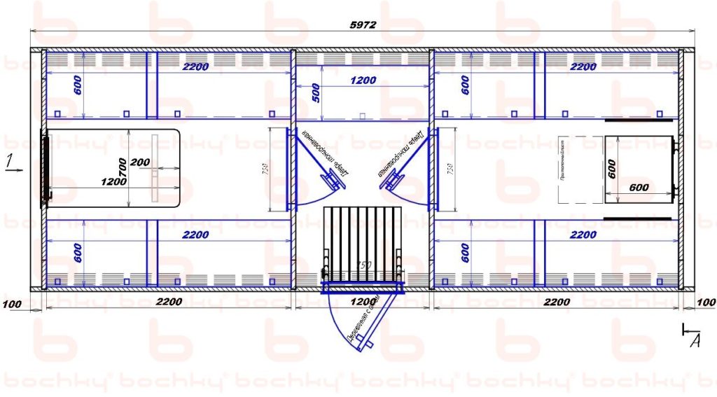 | Длина раздевалки (внутренний размер) | 2200 мм |