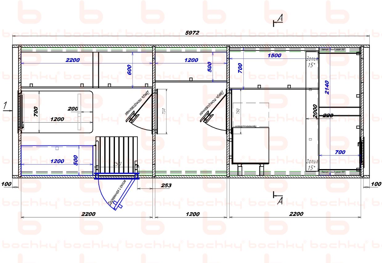 | Длина раздевалки (внутренний размер) | 2200 мм |